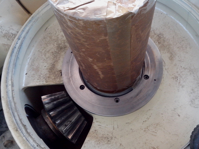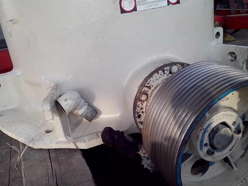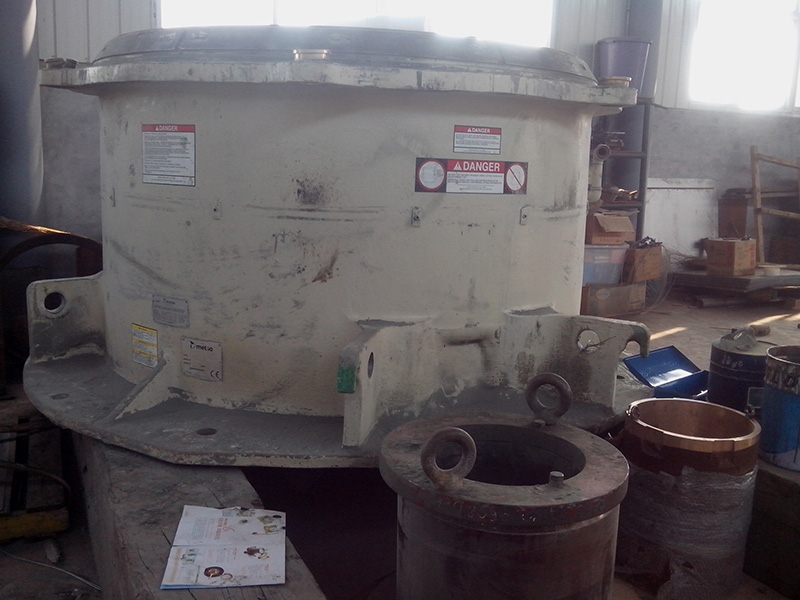 2014-06-08 客戶HP500 破碎機運行中發(fā)生主軸斷裂,運到我公司進行維修。我司技術(shù)人員拆除主軸后發(fā)現(xiàn)主軸錐孔超差,然后對主機架進行補焊、重新加工,最后安裝新主軸。