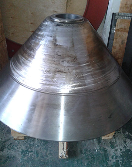 我司按標準維修工藝,對動錐體鑲套,重新加工螺紋;對動錐體外錐面補焊加工。維修后重新安裝球體。