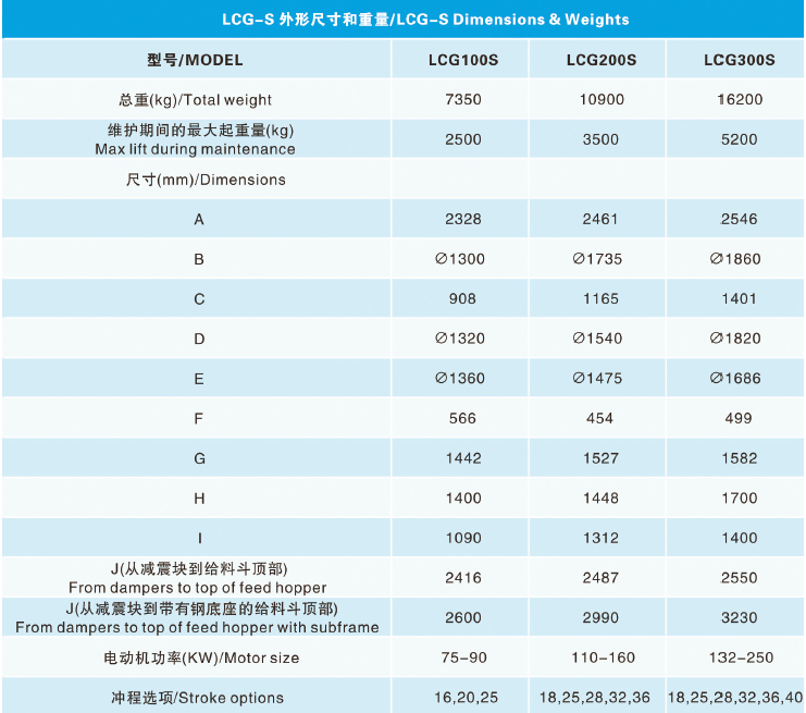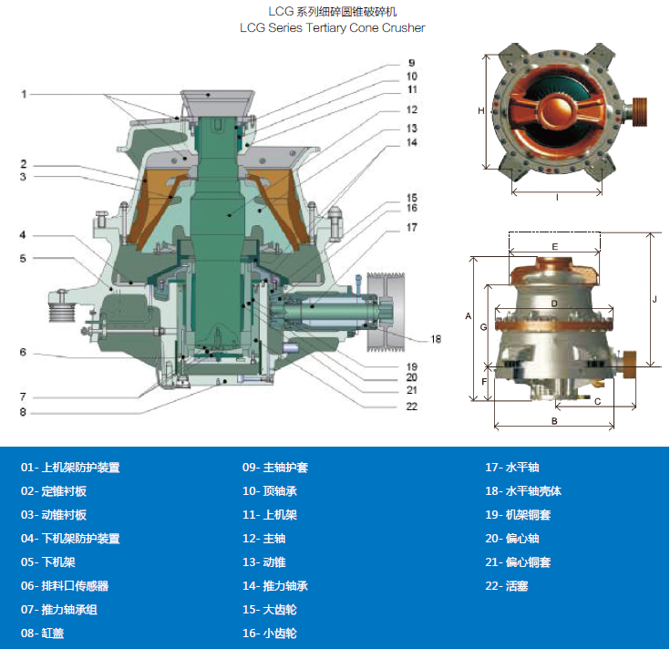 樂礦LCG 系列圓錐破碎機代表了先進的破碎機技術,破碎效率更高,生產成本更低,破碎產品質量更優(yōu)秀,能夠充分適應各種破碎工況,即便是極其堅硬的巖石也能夠應付自如。對于石料或礦山行業(yè),要求破碎設備產量高、產品粒型優(yōu)良、機動性好,LCG 系列圓錐破碎機不但能夠滿足這些要求,而且能夠使破碎流程更加順暢,實現(xiàn)破碎流程的全自動化。LCG- S 系列中碎圓錐破碎機有3 種標準機型,可配置出6 種不同的破碎腔型;LCG 系列細碎圓錐破碎機有5 種標準機型,可配置出20 余種不同的破碎腔型。