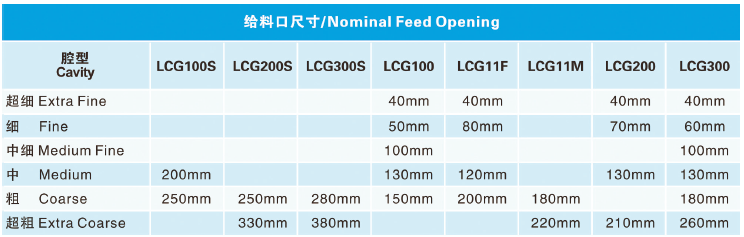 樂礦 LCG 系列圓錐破碎機可以針對不同的生產要求輕松調整腔型,通過選擇不同的破碎腔型,同一臺破碎機可用于破碎生產過程中的第2 段、第3 段或第4 段,以生產不同尺寸的最終產品。通過沖程更換功能可以輕松地對破碎機物料通過量進行調整,以便與其他破碎設備的運轉相協(xié)調。LCG 系列圓錐破碎機廣泛的適用性得益于同一主機結構可以通過更換襯板來獲得不同破碎腔型,因而能夠根據(jù)破碎流程的變化來調整破碎機的腔型,適用性更廣。